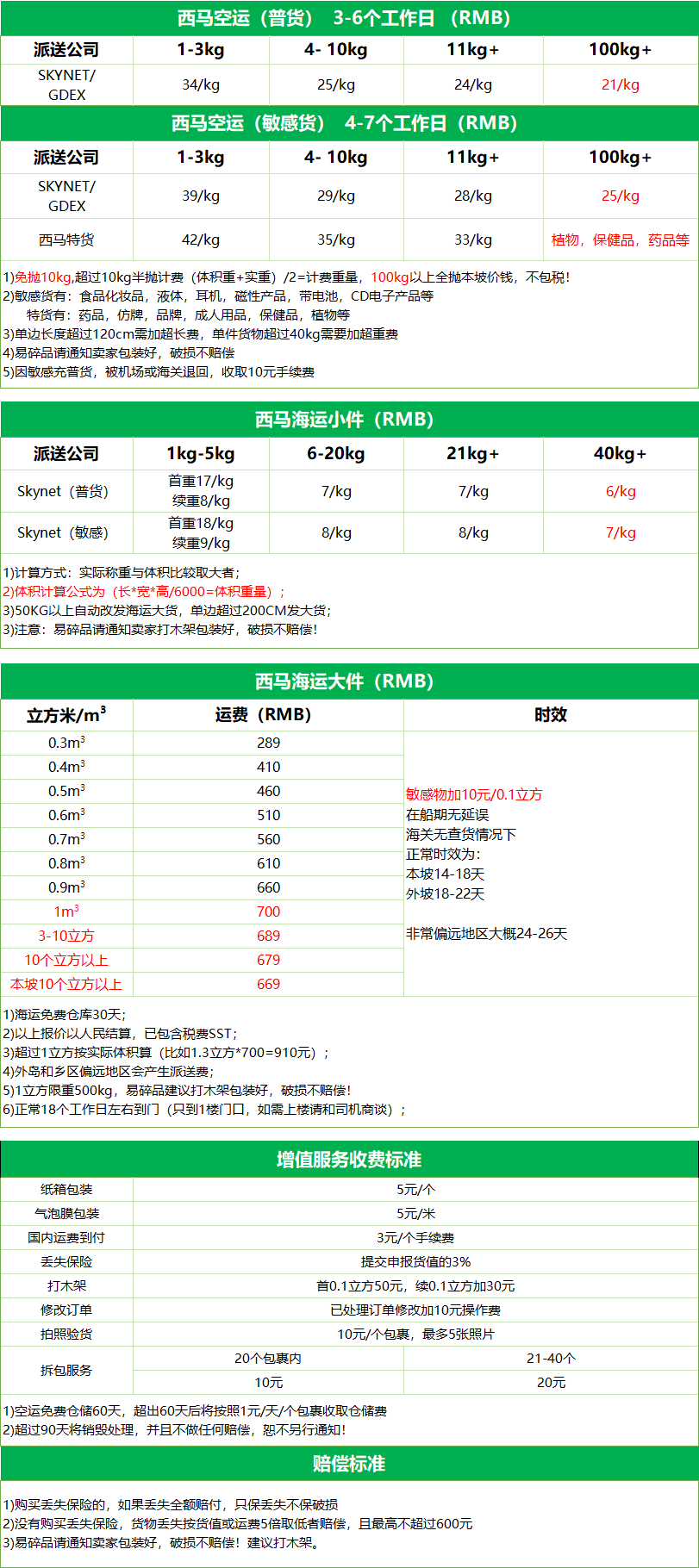 西马空运,海运-运费报价