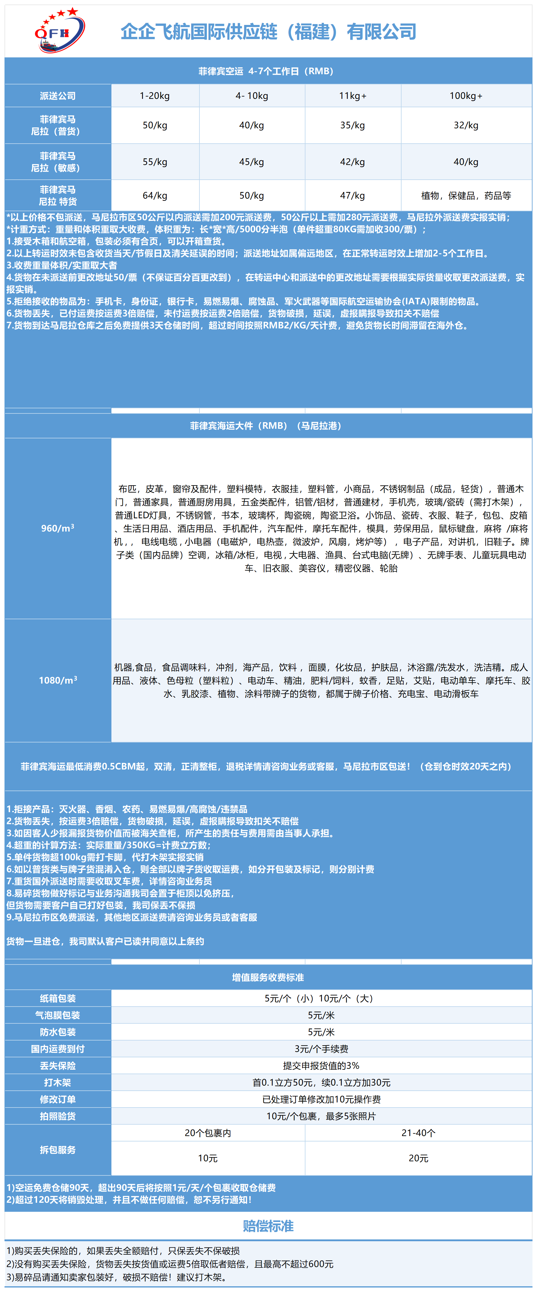 * 默认体积重与实重比较,取较重者计算运费,免抛/半抛优惠请参考报价说明。
