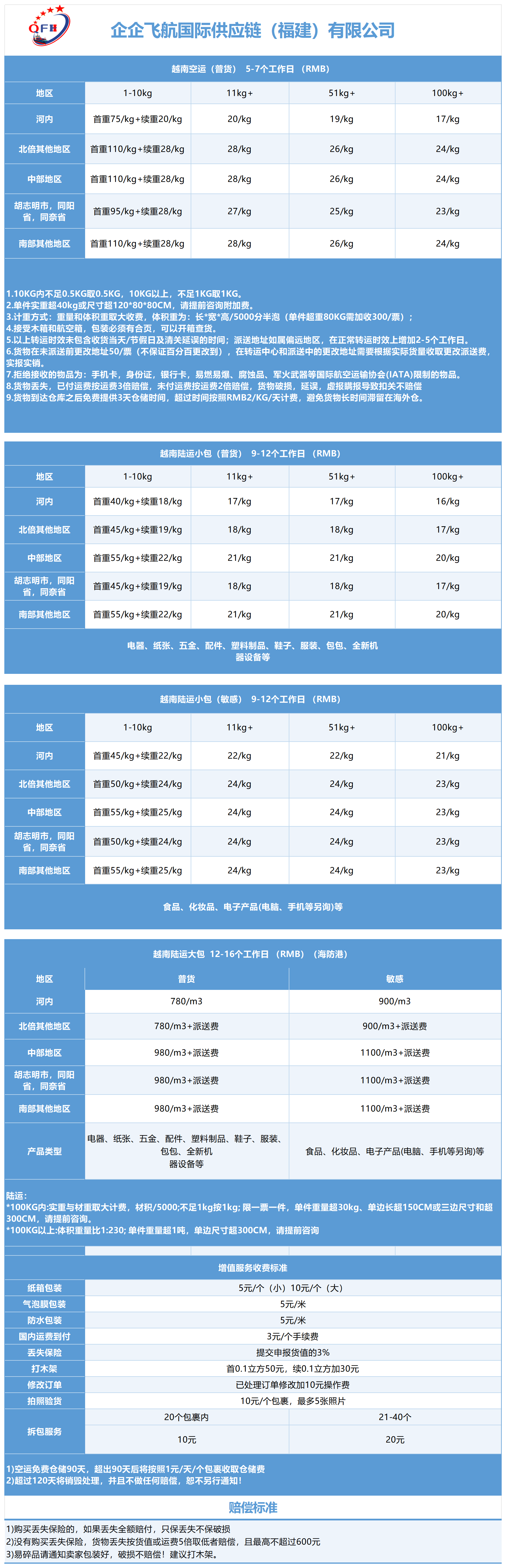 * 默认体积重与实重比较,取较重者计算运费,免抛/半抛优惠请参考报价说明。